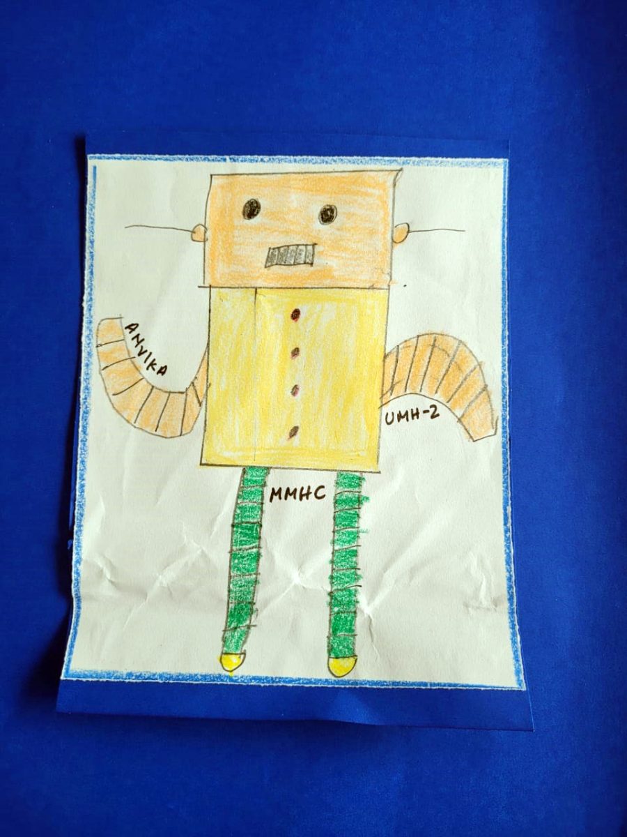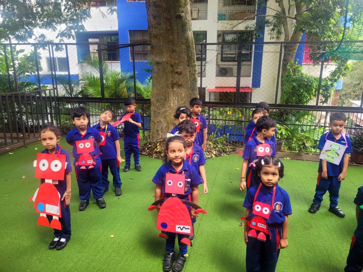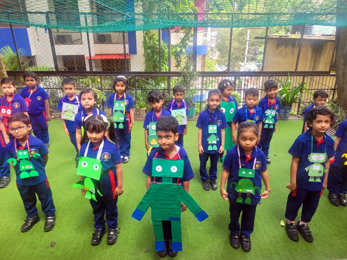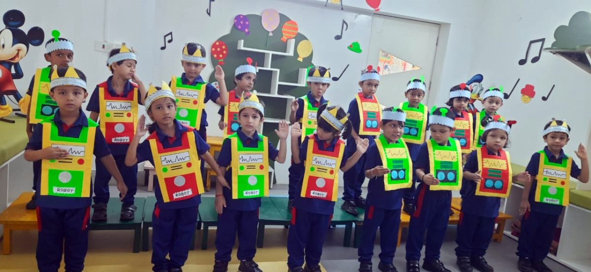 As a follow up, pictures of robots and simple presentation videos of A.I. were shown to the little ones. To showcase their basic understanding of A.I. and the use, the students made posters of robots and understood the concept – that A.I. will help us perform tasks in our daily life. There was enrichment in their vocabulary as they learnt to use and pronounce new words, associated with modern technology. Through Robotic Dance Movements and the use of A.I. Tools, the students have embarked upon their wonderful journey into the world of A.I, right from an early age.